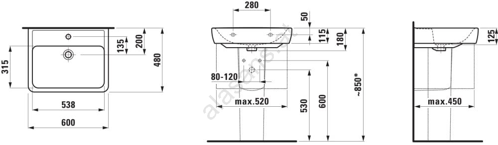 LAUFEN H8189520001041 - Aufsatz-/Hängewaschbecken PRO 60x48 cm Keramik/Weiß