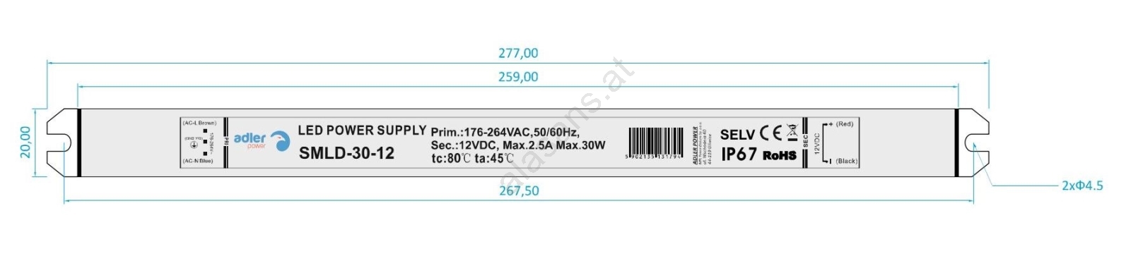 Elektronischer LED-Transformator DRIVER 30W/230V/12V IP67