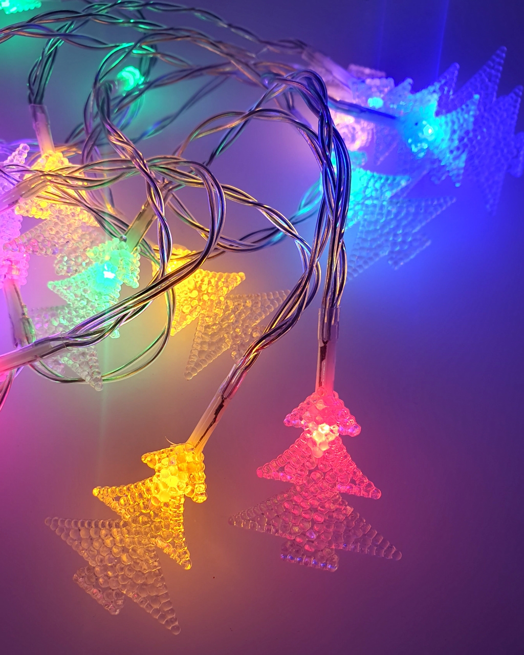 LED-Weihnachts-Lichterkette für den Außenbereich 20xLED/2xAA 2,2 m IP44 mehrfarbige Tannenmotive