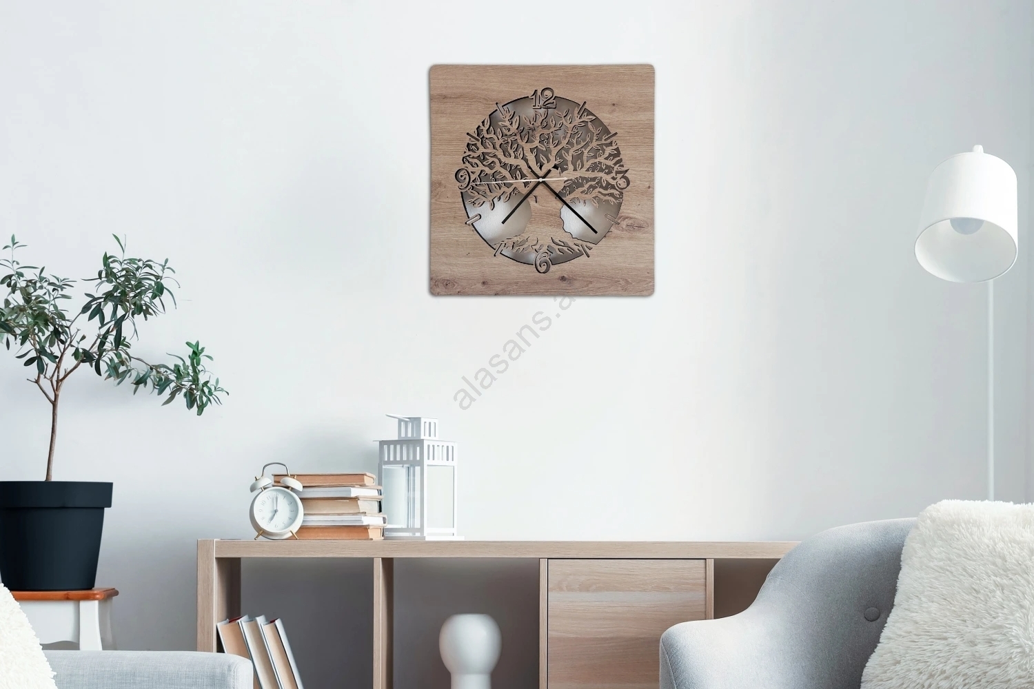 Li-Go 23537/DUB2 - LED-dimmbare Wanduhr LED/10W/5V 20000 mAh 42x42 cm Eiche/Olivenholz rund + Fernbedienung