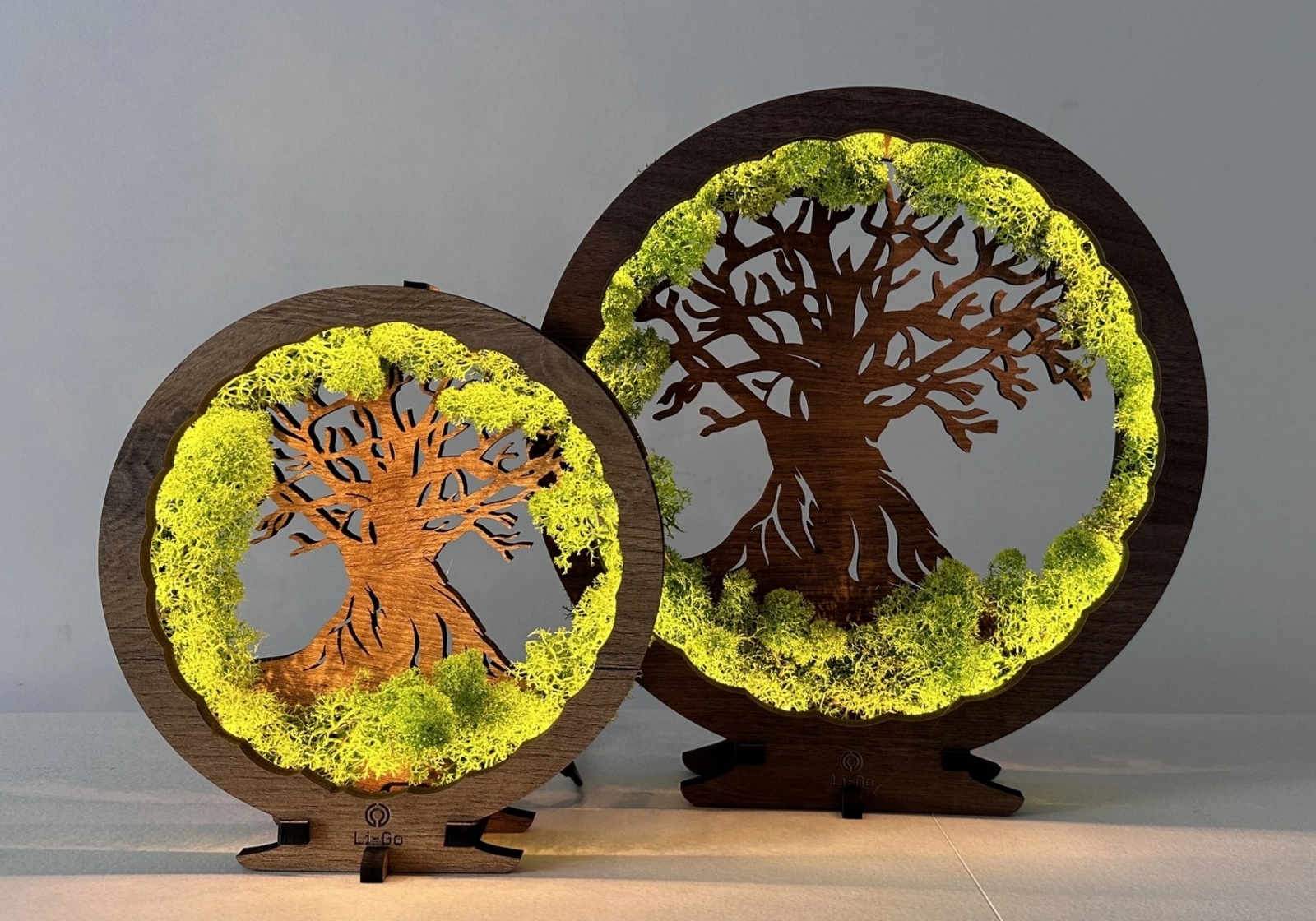 Li-Go 23604/DUB2 - Dimmbare LED-Tischdekoration LED/12W/230V 20x22 cm Eiche/Moos und Baum