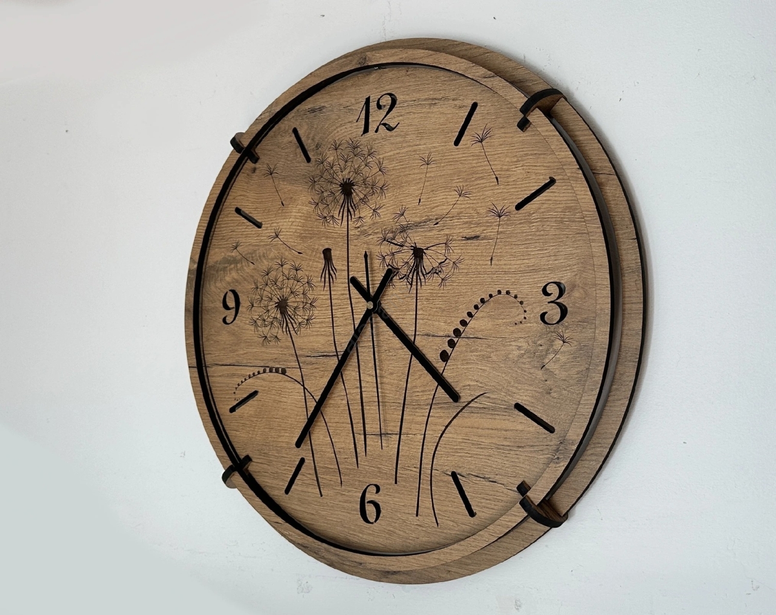 Li-Go 23682/DUB5 - Holz-Wanduhr 1xAA Ø 32 cm Eiche/Löwenzahn
