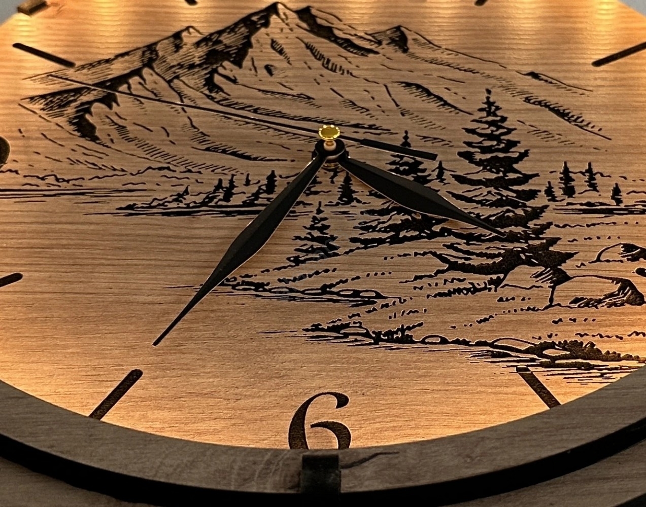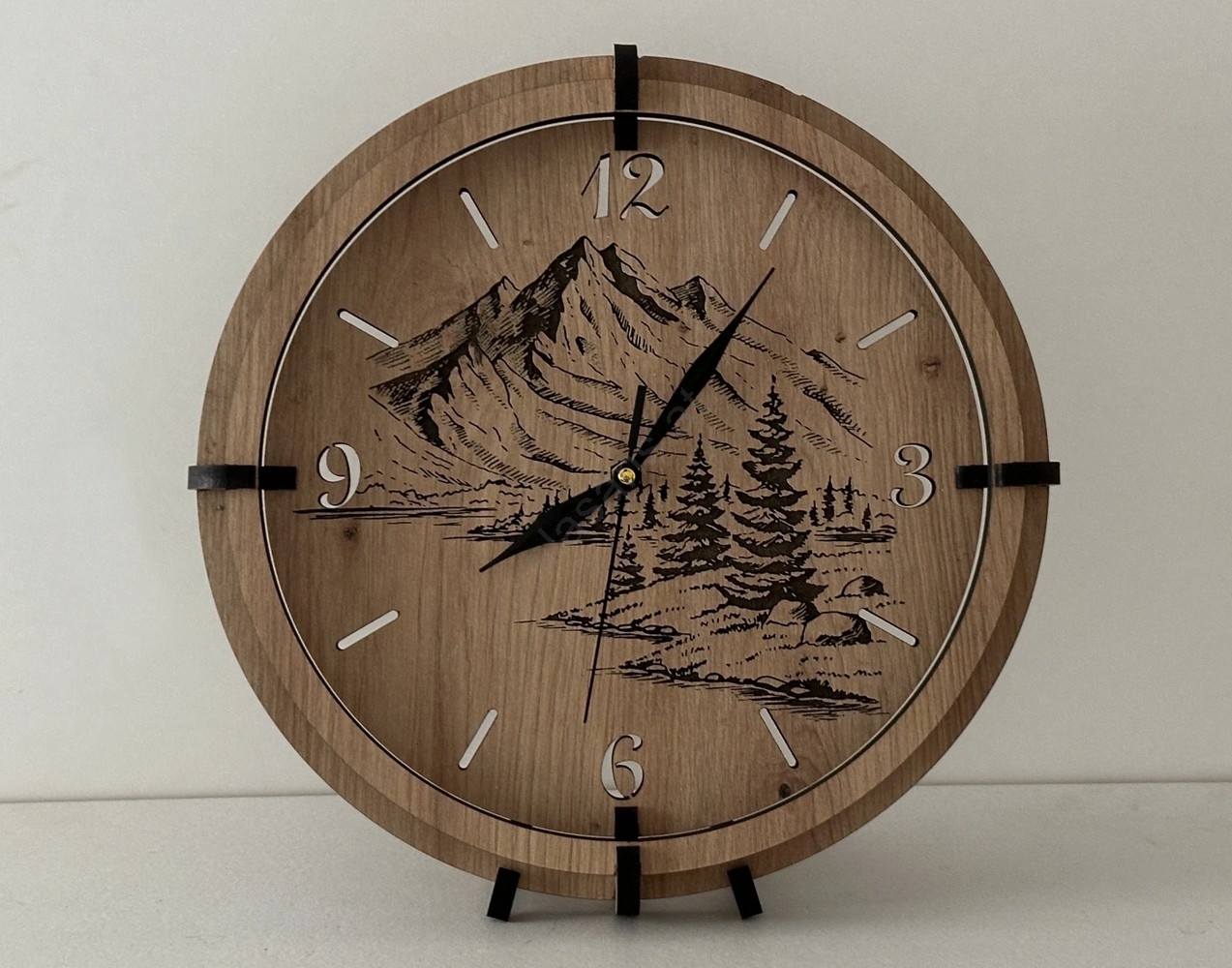 • Li-Go 23676/DUB5 - Holz-Wanduhr 1xAA Ø 32 cm Eiche/Berge