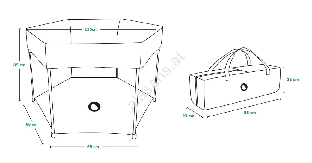 • Das Laufgitter wird mit einer praktischen Tragetasche mit Griff für einfachen Transport geliefert.
