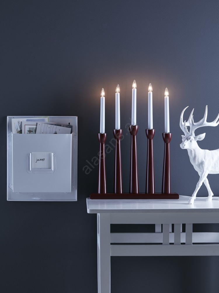 • Weihnachtskerzenhalter aus Holz mit 5 Glühbirnen.