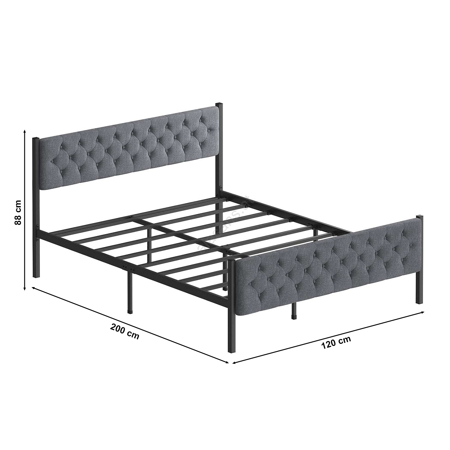 Metall-Doppelbett KAROM 120x200 cm, grau, max. Belastbarkeit 120 kg