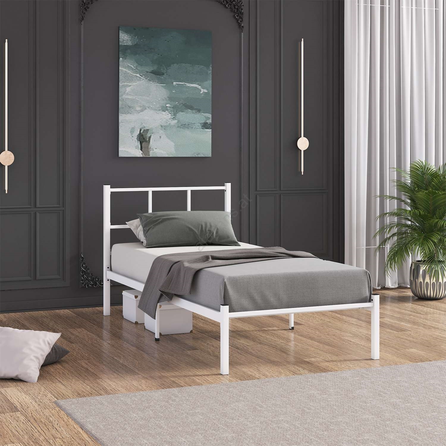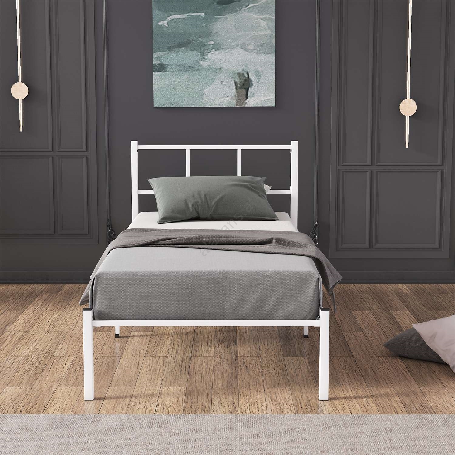 Metall-Einzelbett ROVAN 90 x 200 cm, weiß, Belastbarkeit 120 kg