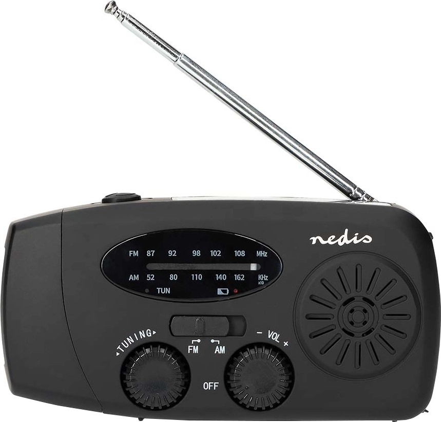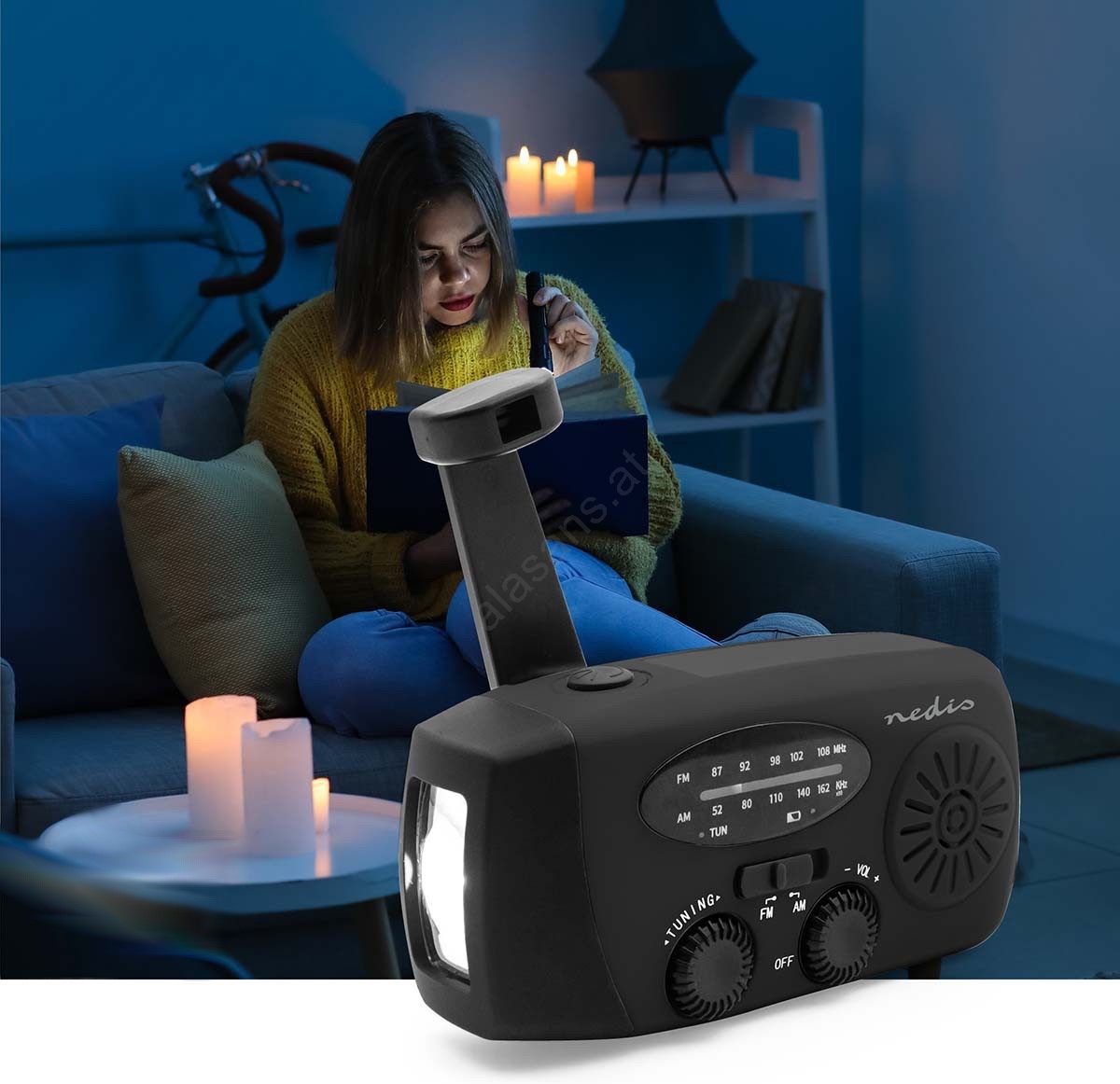 Kurbelbetriebenes AM/FM-Radio mit Solarpanel und integrierter LED-Taschenlampe, 2000-mAh-Akku