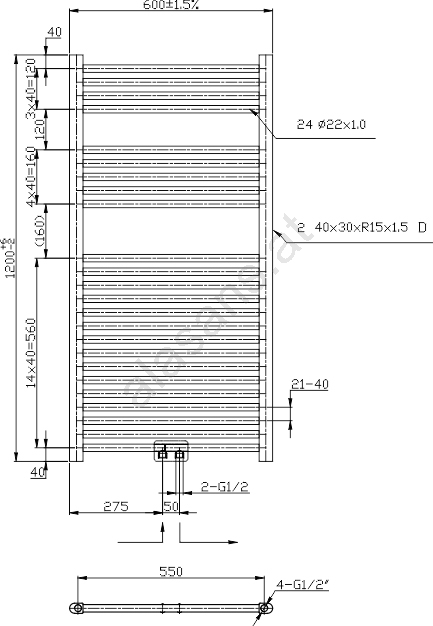 Novaservis - Badezimmer-Handtuchheizkörper 423 W/230 V 120 x 60 cm hochglanzverchromt gerade