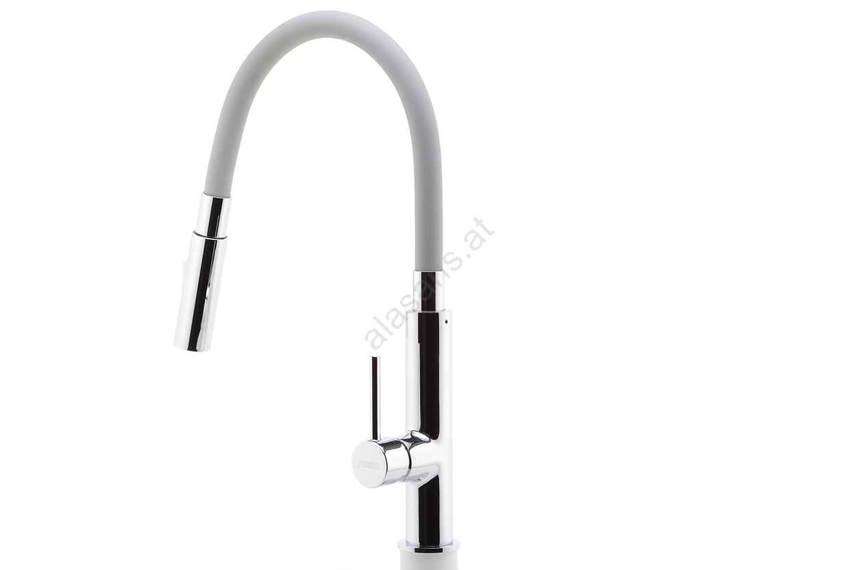 FERRO - Wasserhahn (Armatur) mit flexiblem Arm glänzendes Chrom/grau