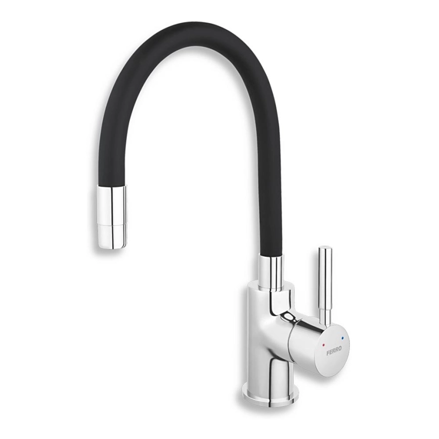 FERRO - Wasserhahn (Armatur) mit flexiblem Arm glänzendes Chrom/matt schwarz