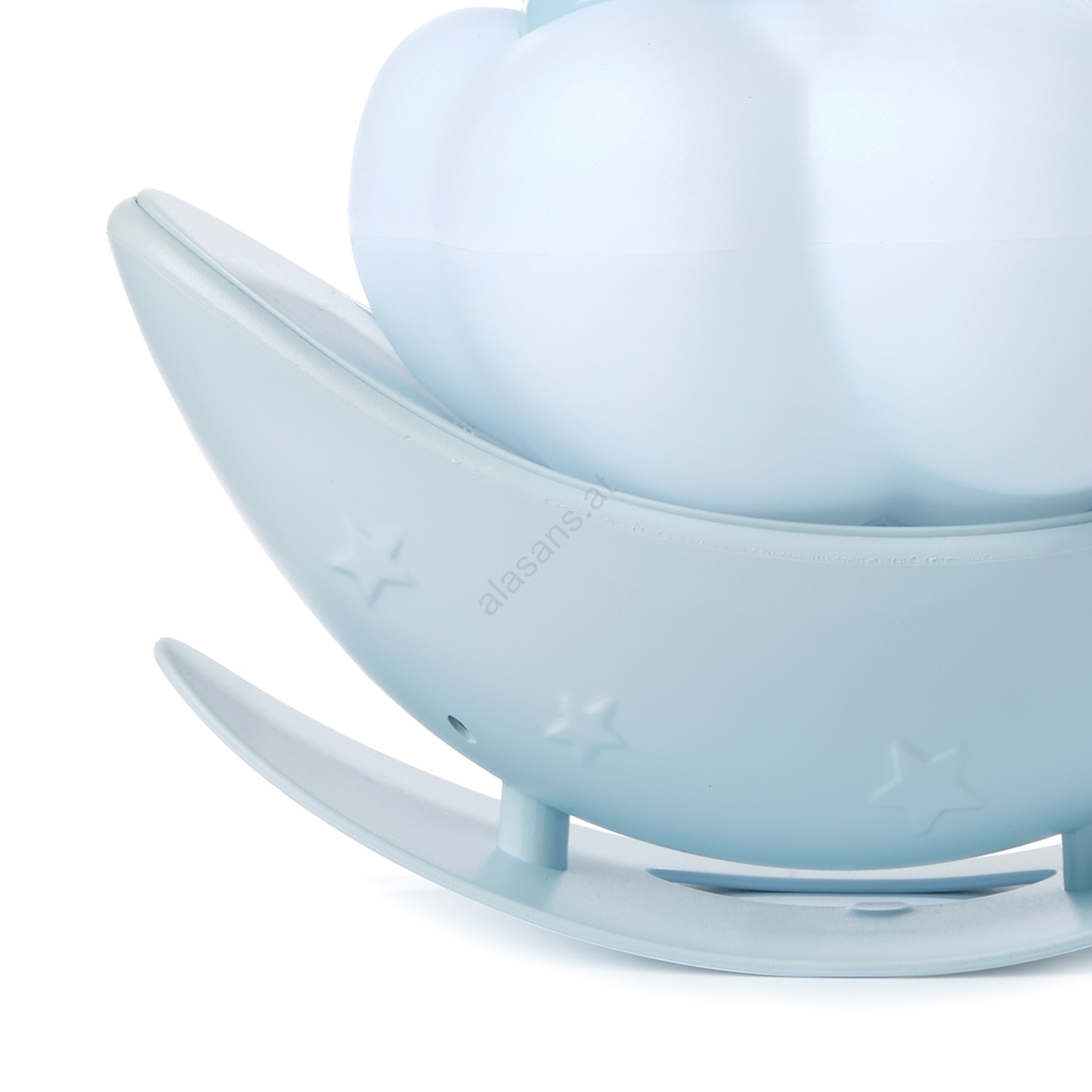 • Die Basis bildet ein in zartem Blau gehaltener Halbmond mit dezent hervorgehobenen Sternchen, der bei Berührung sanft schaukelt.