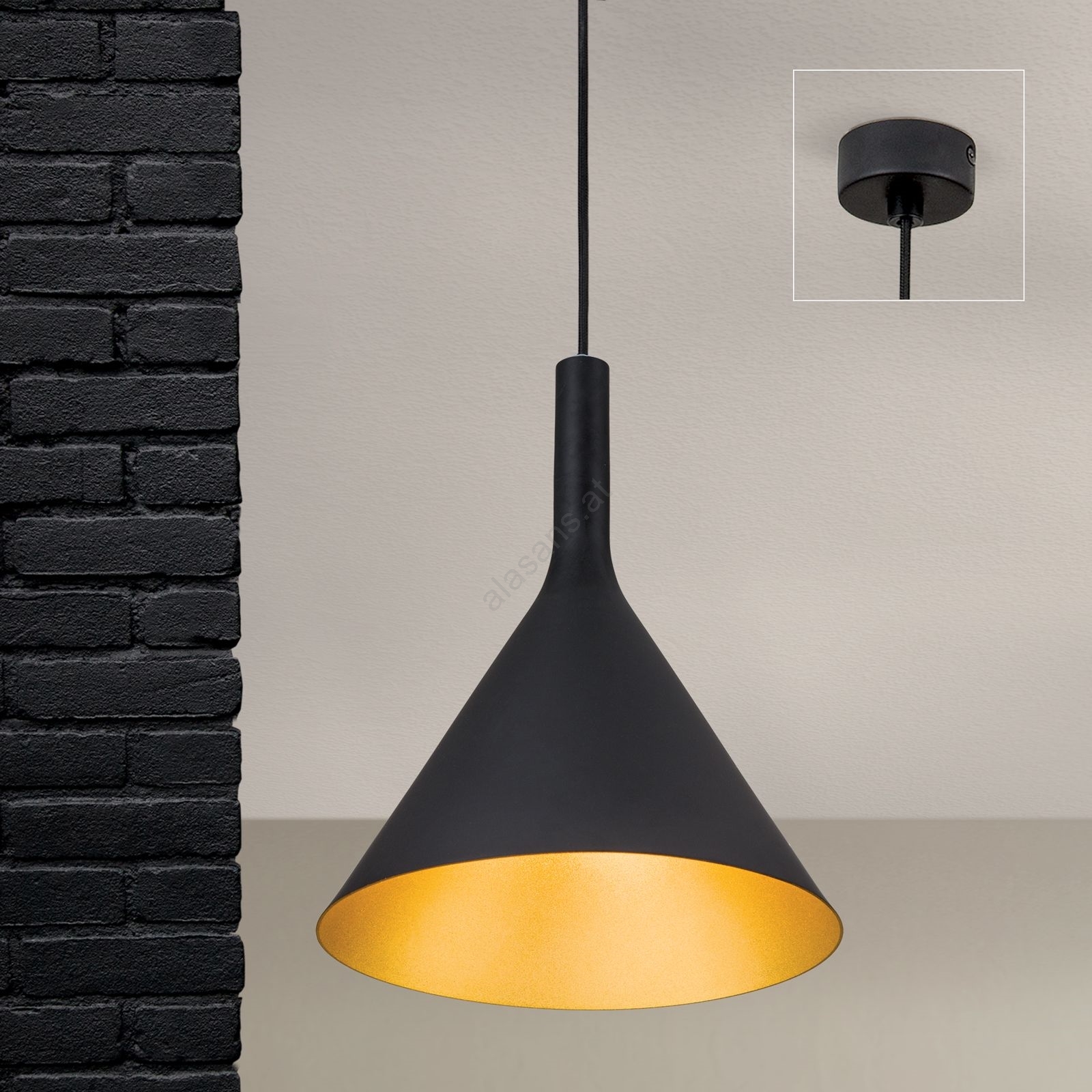 Pendelleuchte GUNDA, 1x E27/60W/230V, Ø 25 cm, schwarz/gold zeichnet sich durch schönes und funktionales Design aus. Eine Glühbirne mit E27 Sockel ist für die Leuchte geeignet. Hier, können Sie andere Glühlampen zu vorteilhaften Preisen kaufen. Sie erhalten eine attraktive Ergänzung für Ihr Zuhause.