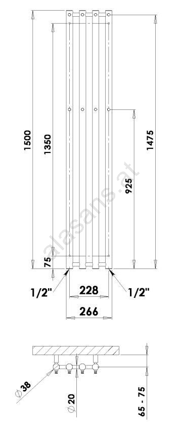 P.M.H. R2B - Bad-Handtuchheizkörper ROSENDAL 350W 150 cm schwarz