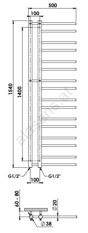 P.M.H. T2W - Badezimmer-Handtuchheizkörper THEIA 352W 154 cm rechts/weiß