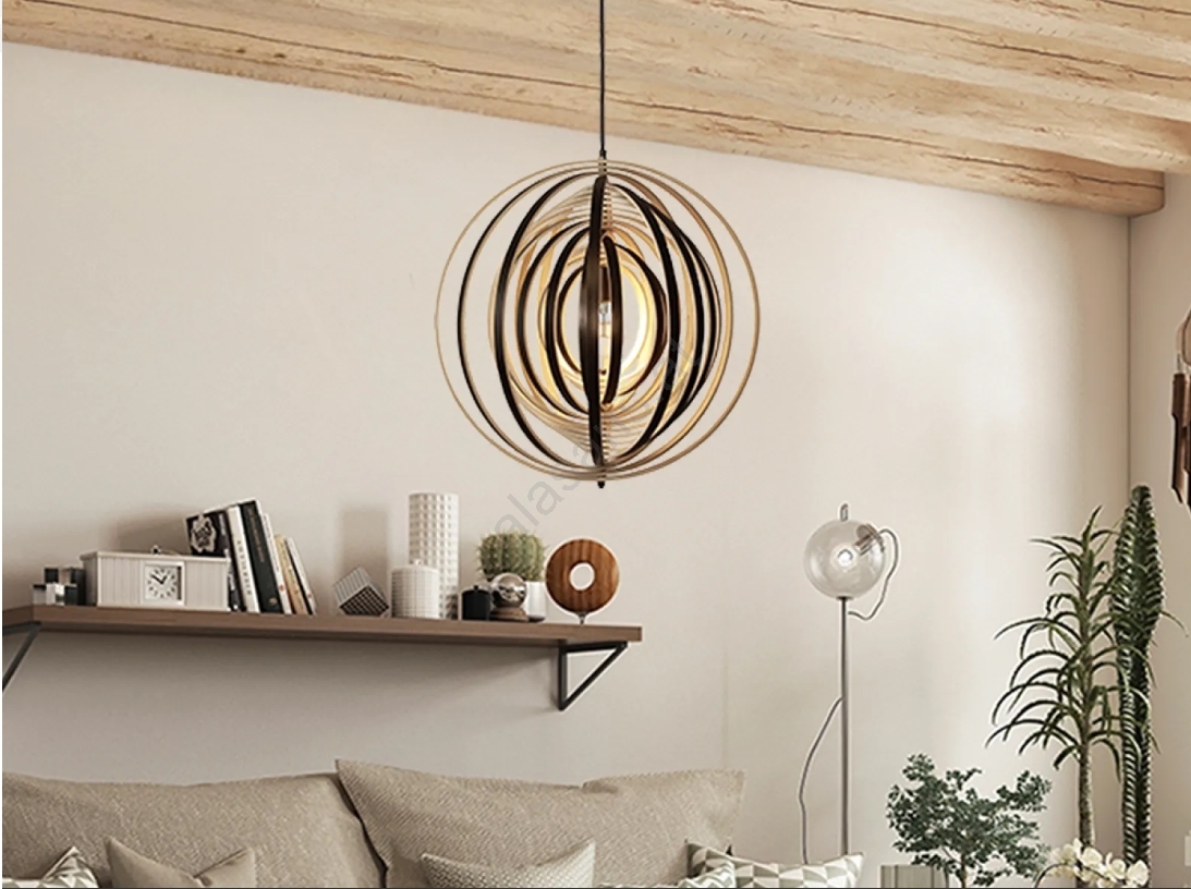 • Pendelleuchte an Kabel, 1x E27/60W/230V, Ø 50 cm, massiv/Furnier/Gummibaumholz