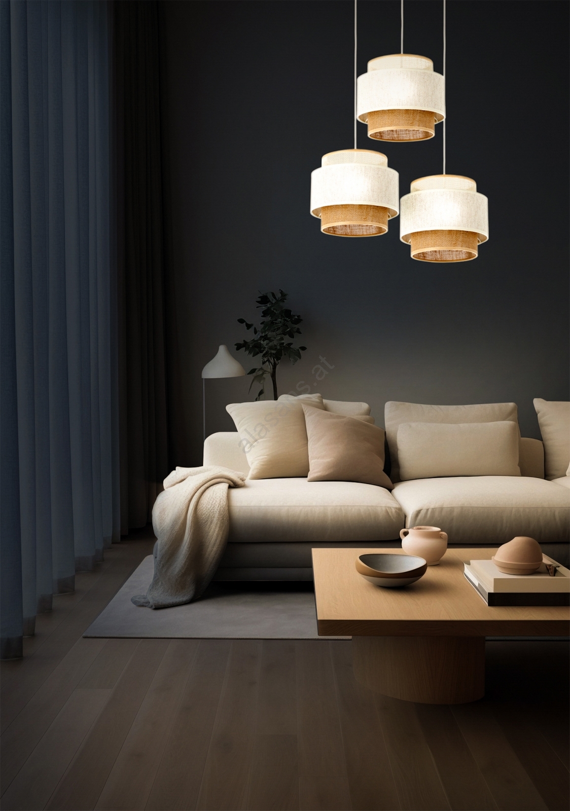 • Pendelleuchte an Kabel BOHO 3xE27/60W/230V weiß/jute