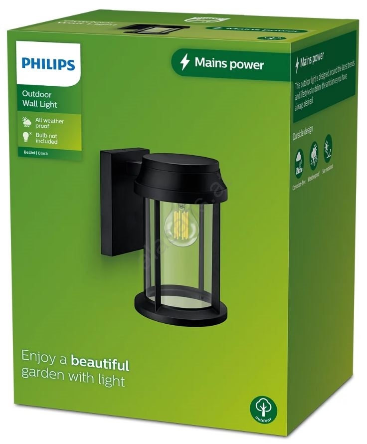 Philips - Outdoor-Wandleuchte BELLINI 1xE27/25W/230V IP44 zeichnet sich durch schönes und funktionales Design aus. Eine Glühbirne mit E27 Sockel ist für die Leuchte geeignet. Hier, können Sie andere Glühlampen zu vorteilhaften Preisen kaufen. Sie erhalten eine attraktive Ergänzung für Ihr Zuhause.