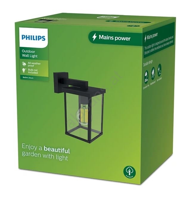 Philips - Outdoor-Wandleuchte BELLINI 1xE27/25W/230V IP44 zeichnet sich durch schönes und funktionales Design aus. Eine Glühbirne mit E27 Sockel ist für die Leuchte geeignet. Hier, können Sie andere Glühlampen zu vorteilhaften Preisen kaufen. Sie erhalten eine attraktive Ergänzung für Ihr Zuhause.