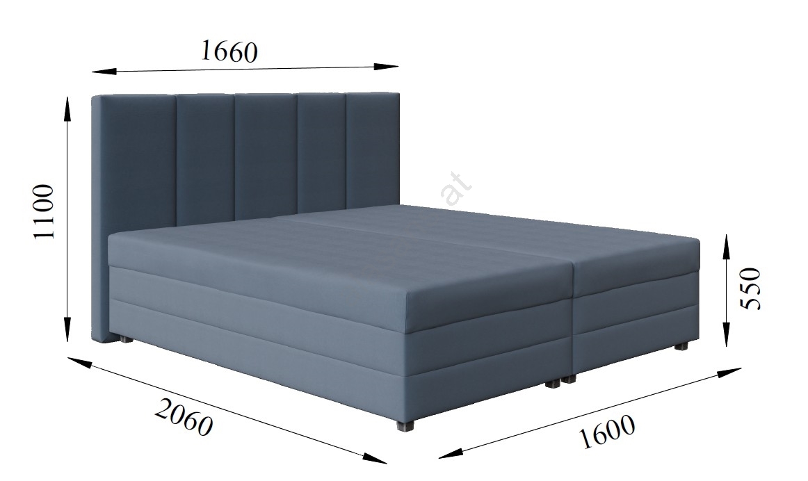 • Gepolstertes Doppelbett mit Federkernmatratzen und hohem, geradem, elegantem Kopfteil.