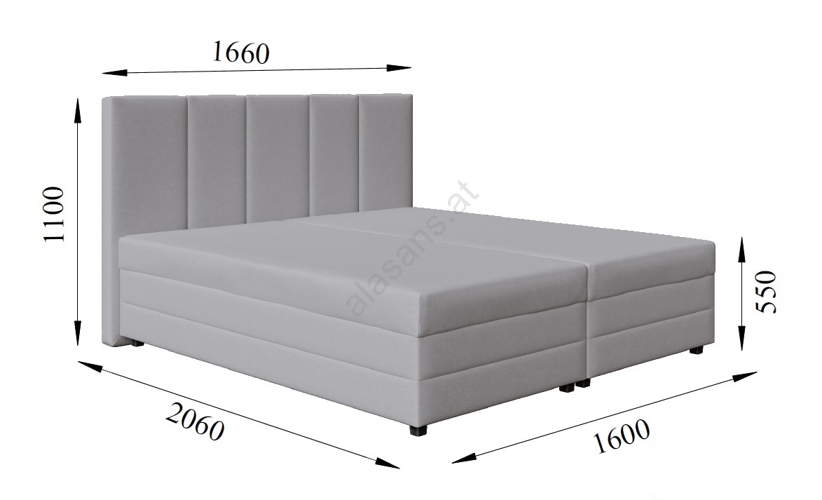 • Gepolstertes Doppelbett mit Federkernmatratzen und hohem, geradem, elegantem Kopfteil.