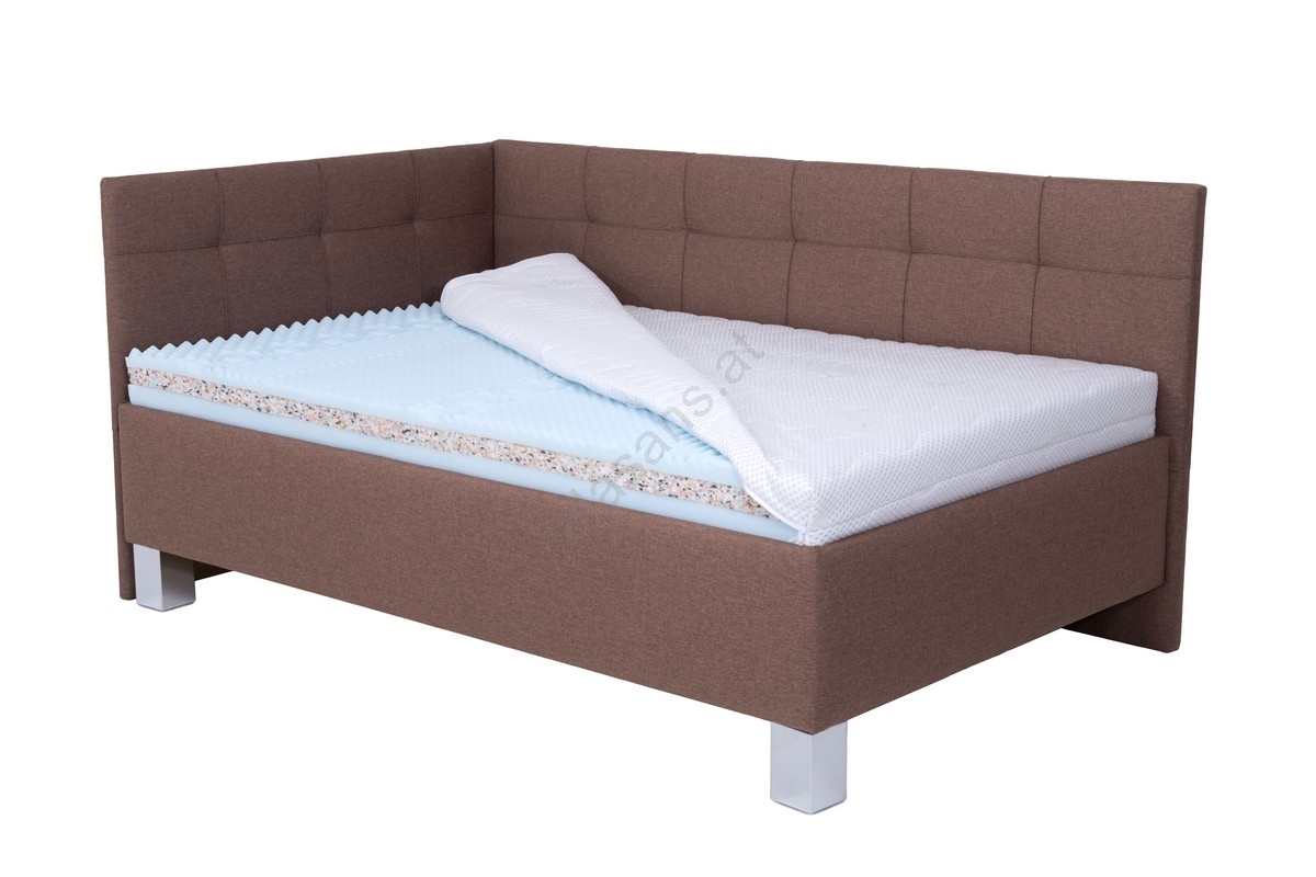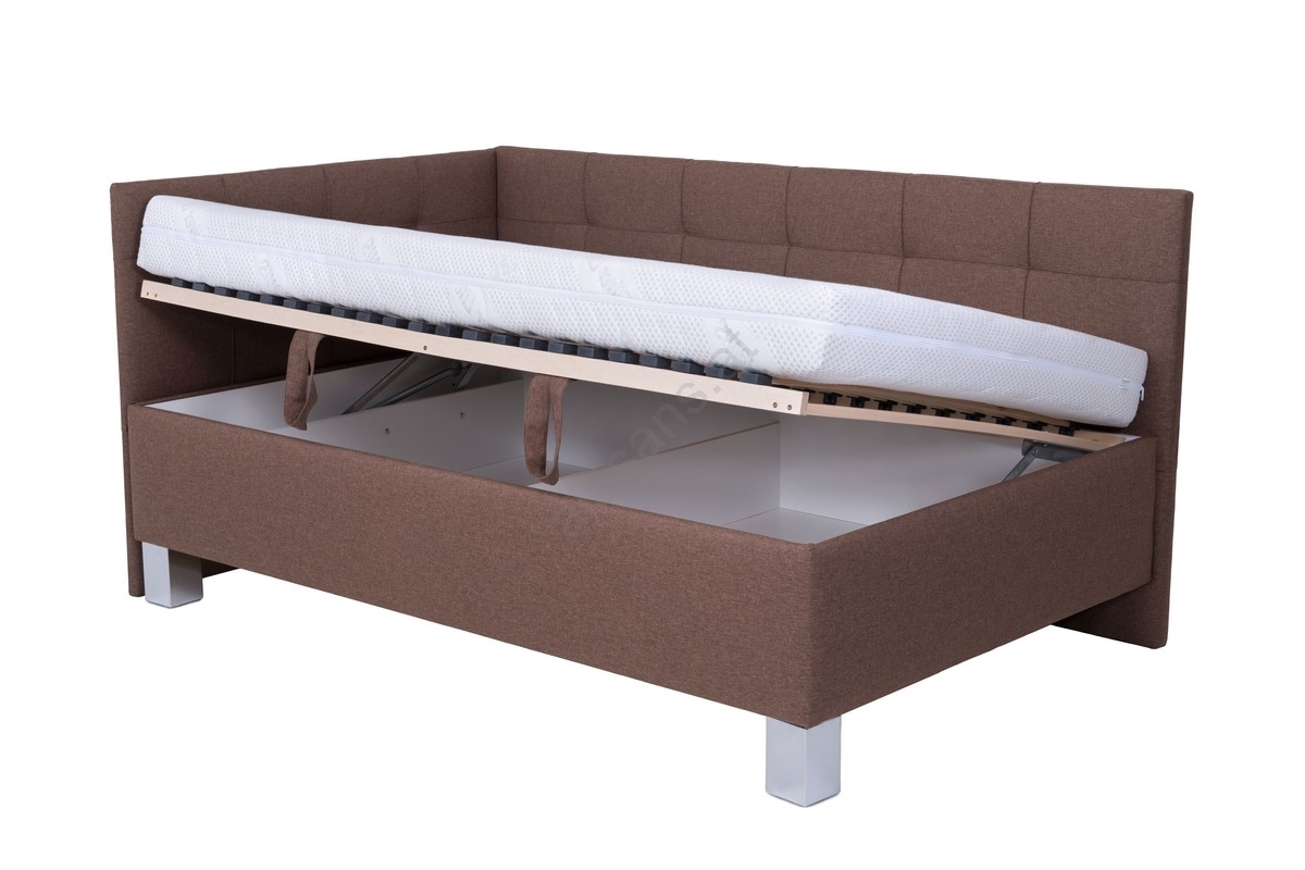 Polsterbett MARIA PETITE 120x200 cm mit Matratze und Bettkasten, braun