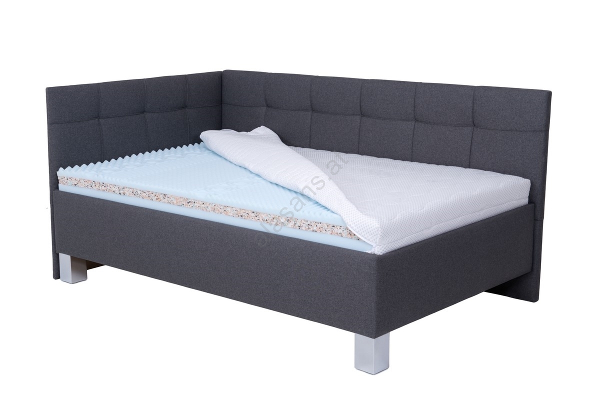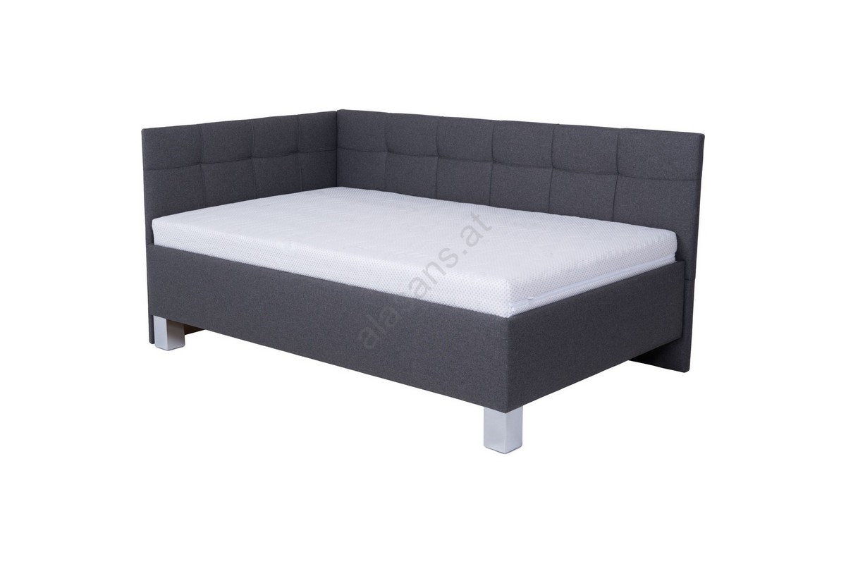 Polsterbett MARIA PETITE 120 x 200 cm mit Matratze und praktischem Bettkasten, grau