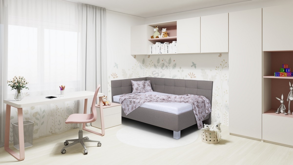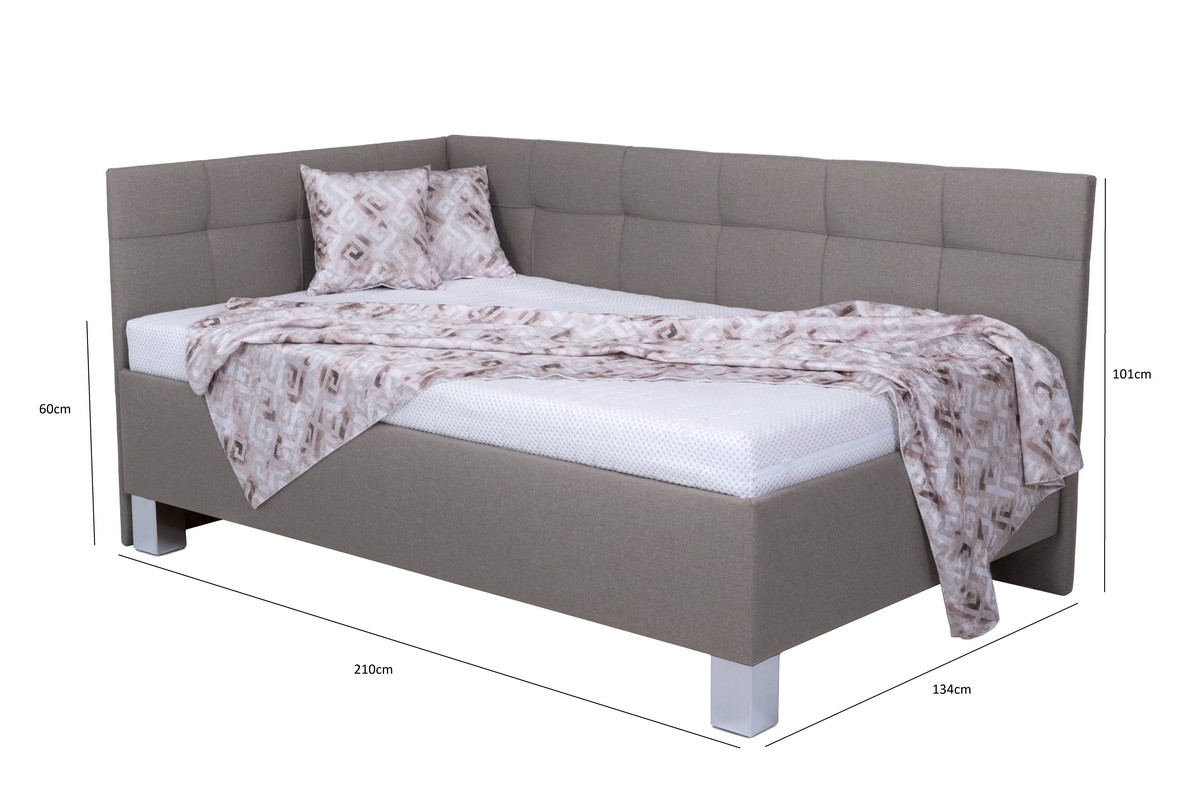 Komfortables, gepolstertes Bett MARIA PETITE 120x200 cm mit Matratze und großzügigem Stauraum, taupe