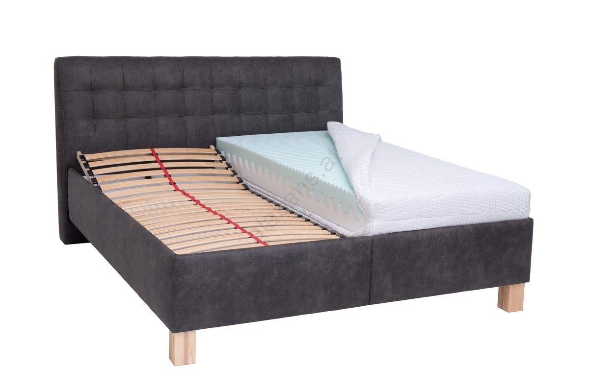 Polsterbett VIOLET 180x200 cm mit Matratze und Stauraum, dunkelgrau