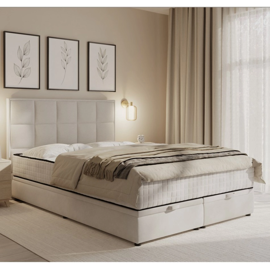 • Polsterbett GRACE 140x200 cm mit Matratzen und Stauraum, beige