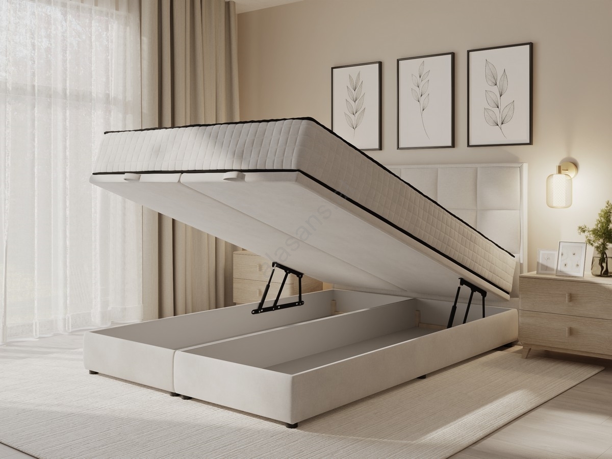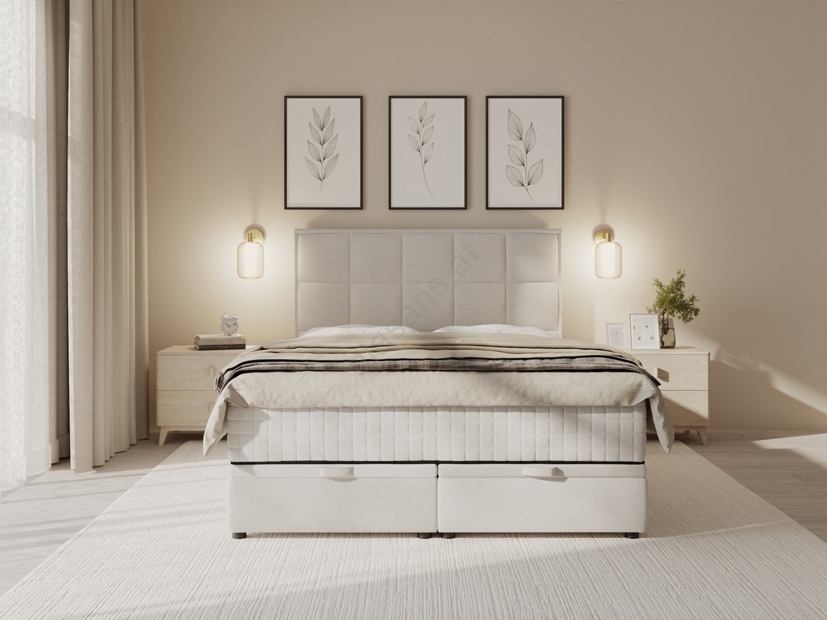 Polsterbett GRACE 160x200 cm mit Matratzen und Bettkasten, beige