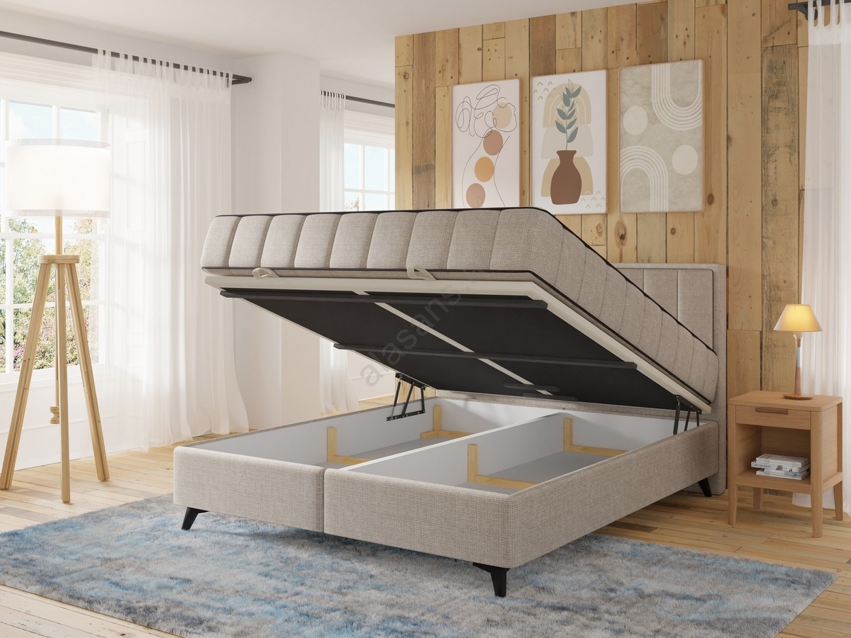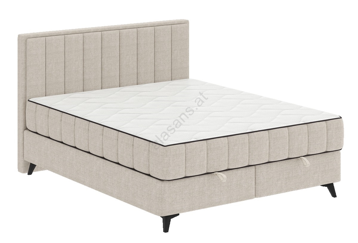 Polsterbett ALICIA 160x200 cm mit Matratzen, Topper und integriertem Stauraum, beige