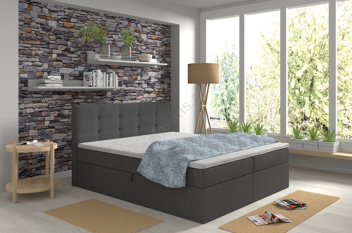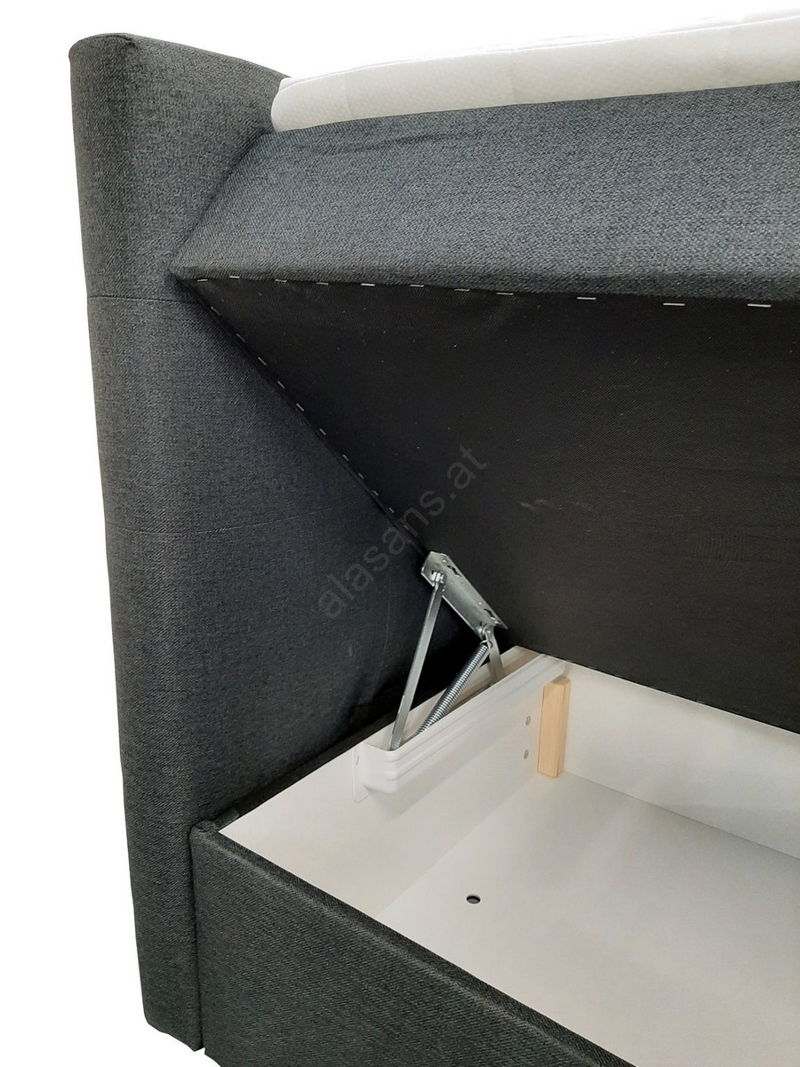 • Polsterbett EMBER 160x200 cm, Anthrazit – inklusive Matratzen und Topper mit integriertem Stauraum