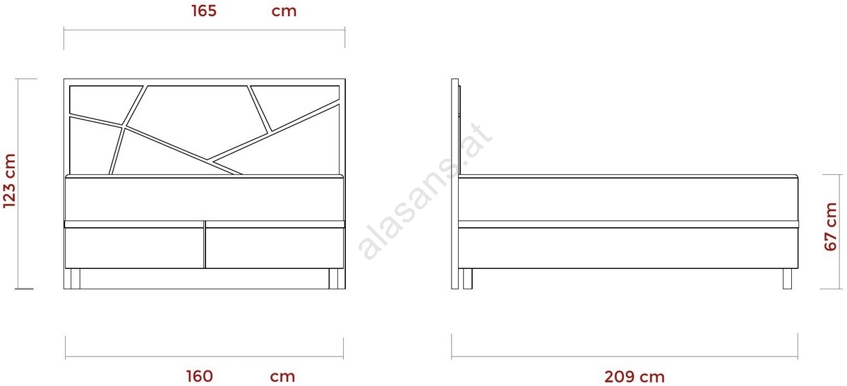 • Das originelle Kopfteil mit geometrischen Elementen zieht sofort alle Blicke auf sich und verleiht dem Raum einen einzigartigen Charakter.