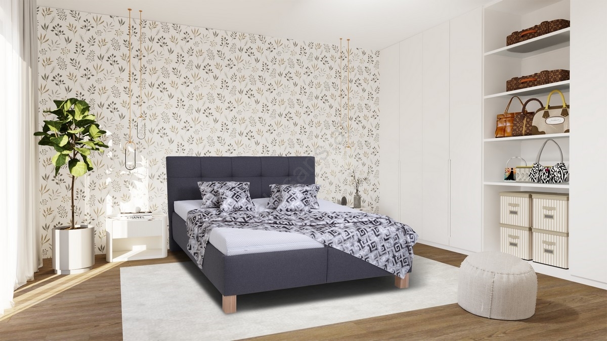 • Gepolstertes Bett MARIA 180x200 cm mit Matratze und großzügigem Stauraum, grau