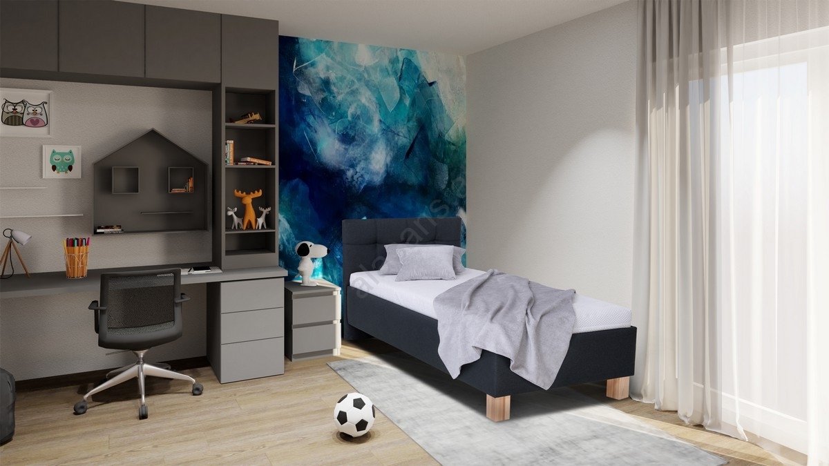 • Polsterbett MARIA ONE 90x200 cm mit Matratze und Stauraum, grau