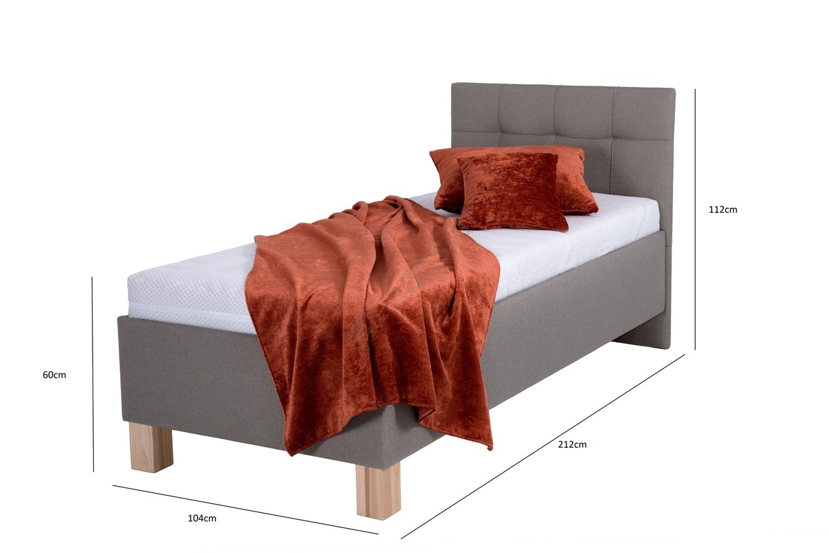 • Polsterbett MARIA ONE 90x200 cm mit Matratze und Stauraum, grau