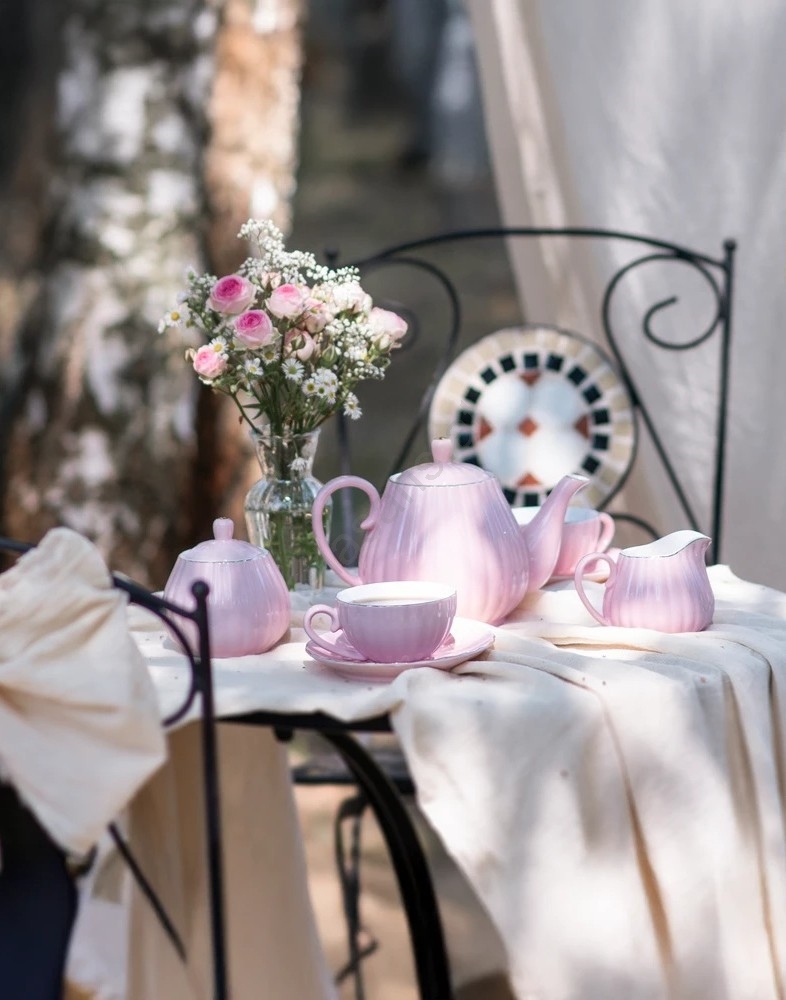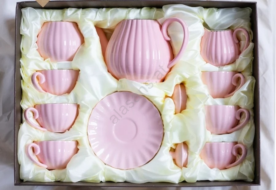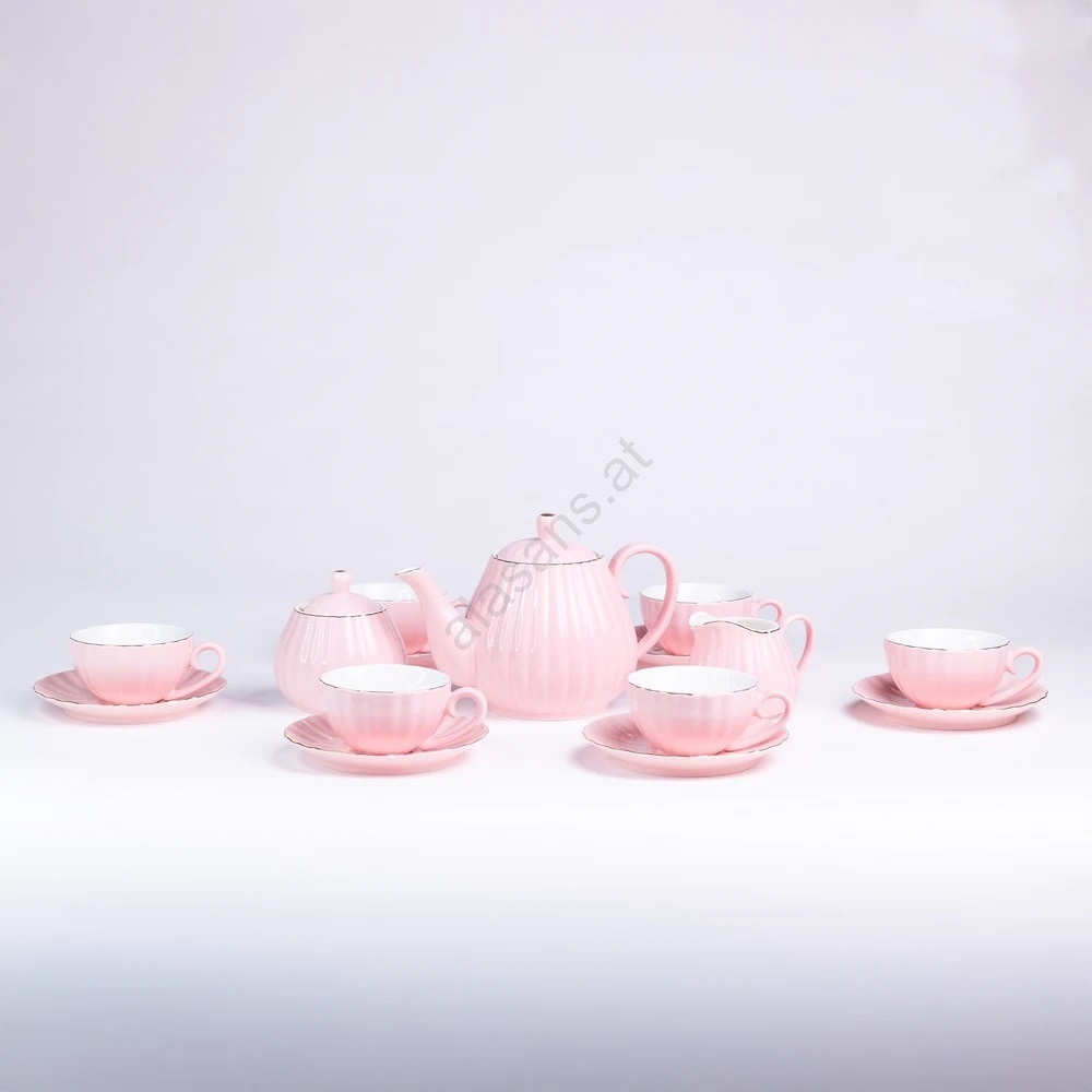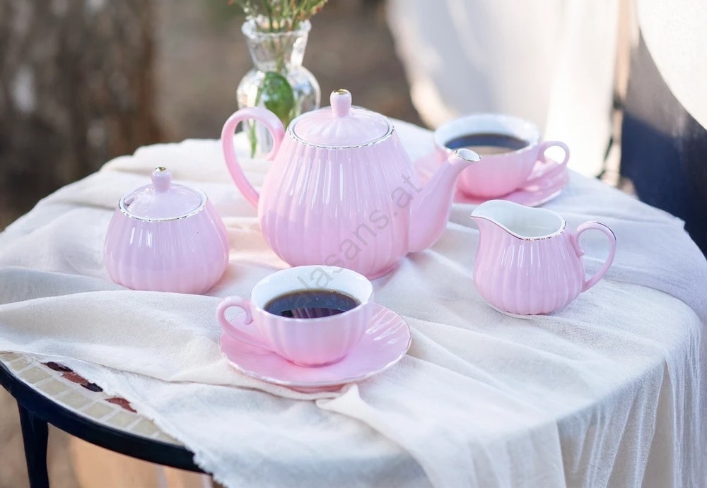 Porzellan-Kaffeeset, 15-teilig, rosa