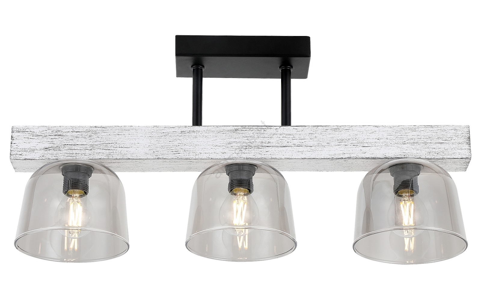 Die moderne Deckenleuchte Cardamom mit 3 Glühbirnen wird ein markantes Highlight in Ihrem Wohnzimmer, Esszimmer oder Schlafzimmer sein. Die Leuchte aus Metall und Holz lässt sich an der Decke mit einer quadratischen, mattschwarzen dekorativen Basis befestigen. Das Element, das die Leuchtenköpfe hält, ist in silberner Eichenoptik gehalten, während die glockenförmigen Schirme aus getöntem Glas gefertigt sind. Die Cardamom-Leuchte kann mit drei Glühbirnen betrieben werden, jeweils mit einer Leistung von bis zu 40W. Der Sockeltyp ist E14. Je nach Ihren Vorlieben können Sie für dieses Modell warmweiße oder natürlich weiße Lichtquellen wählen. Wenn Sie die Leuchte im Schlafzimmer installieren, empfehlen wir Glühbirnen mit warmweißem Licht, die eine gemütliche, intime Atmosphäre schaffen. Die Abmessungen dieser Deckenleuchte sind wie folgt: Breite 500 mm, Durchmesser jedes Schirms 120 mm, Abstand der Leuchte zur Wand 240 mm, Installationsdurchmesser 80 mm. Dieses Modell wird ohne Leuchtmittel geliefert.
