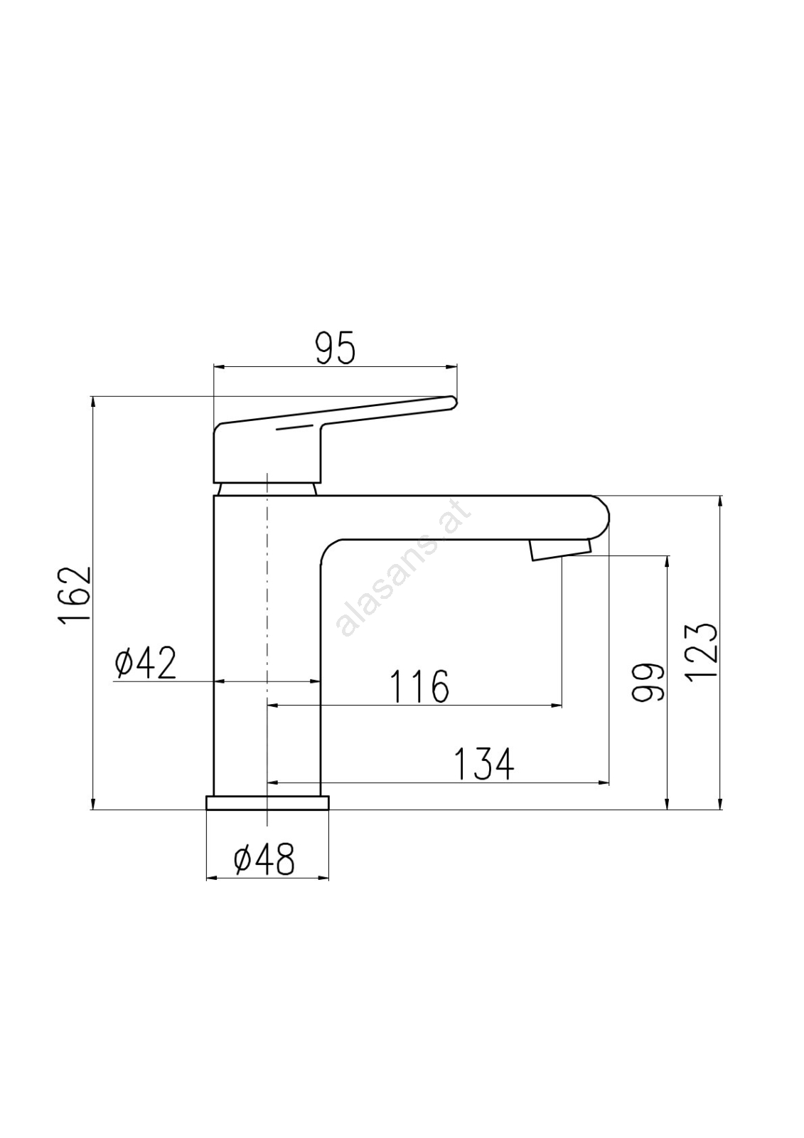 • Standarmatur für den Waschtisch ohne Ablaufgarnitur.