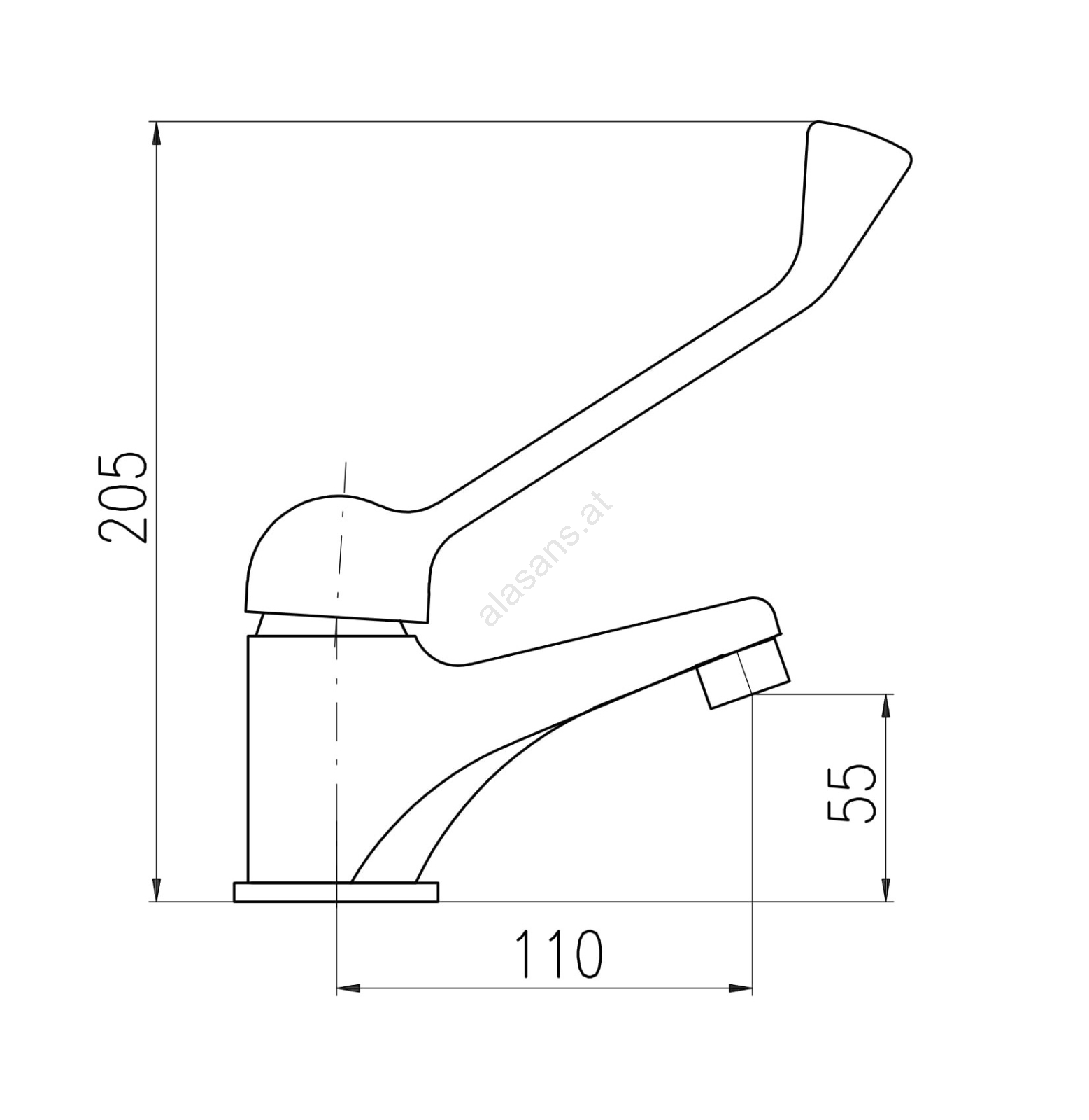 • Stand-Waschtischarmatur ohne Ablaufgarnitur mit verlängertem Hygienehebel.