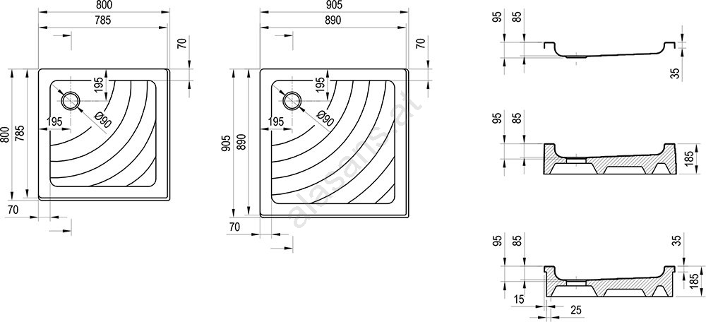 Ravak A007701120 - Quadratische Duschwanne ANGELA 90x90 cm, weiß