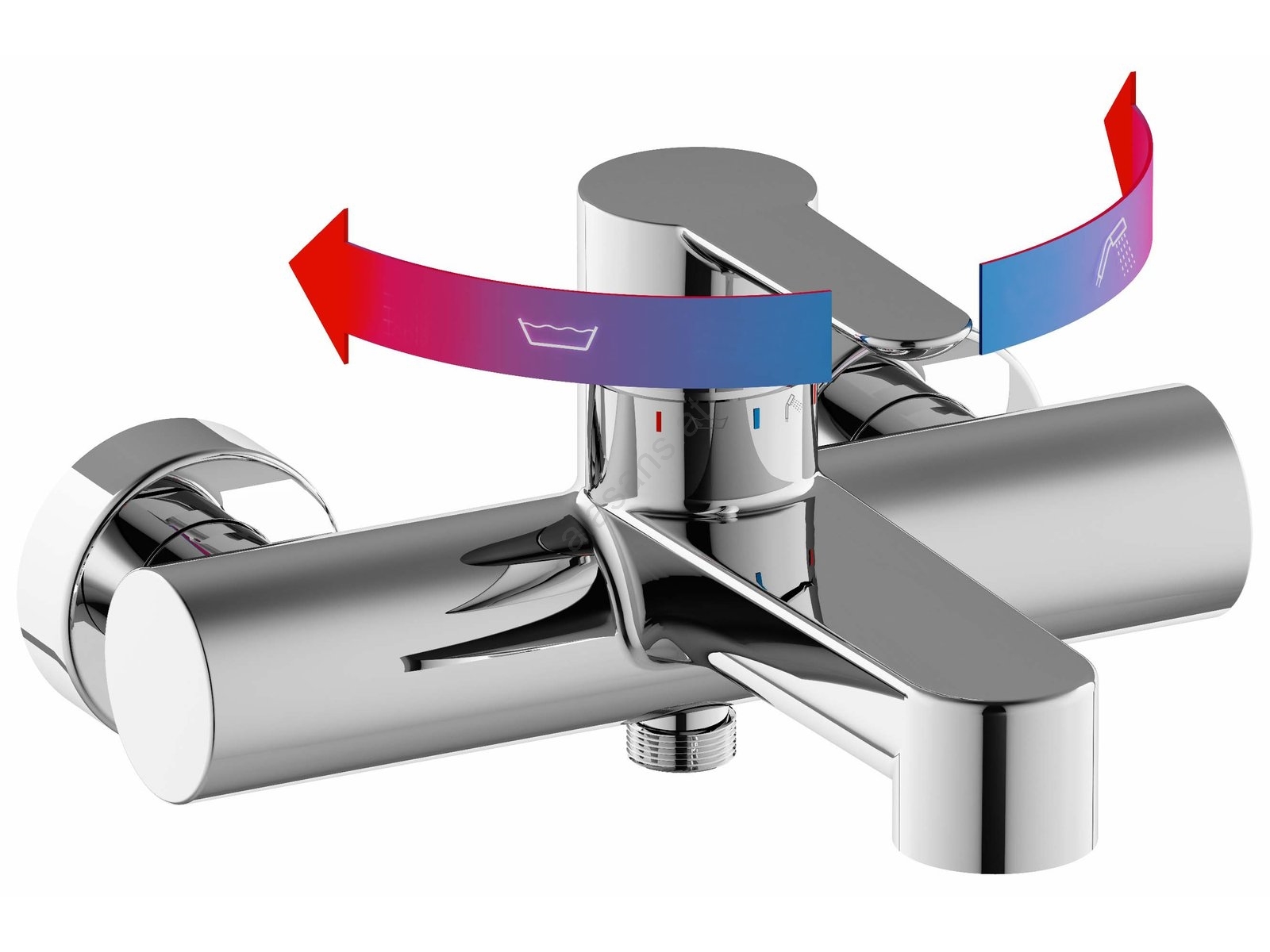 • Die Wannenbatterie Puri verfügt über eine spezielle Rotationskartusche zur Umschaltung zwischen Wanne und Dusche.