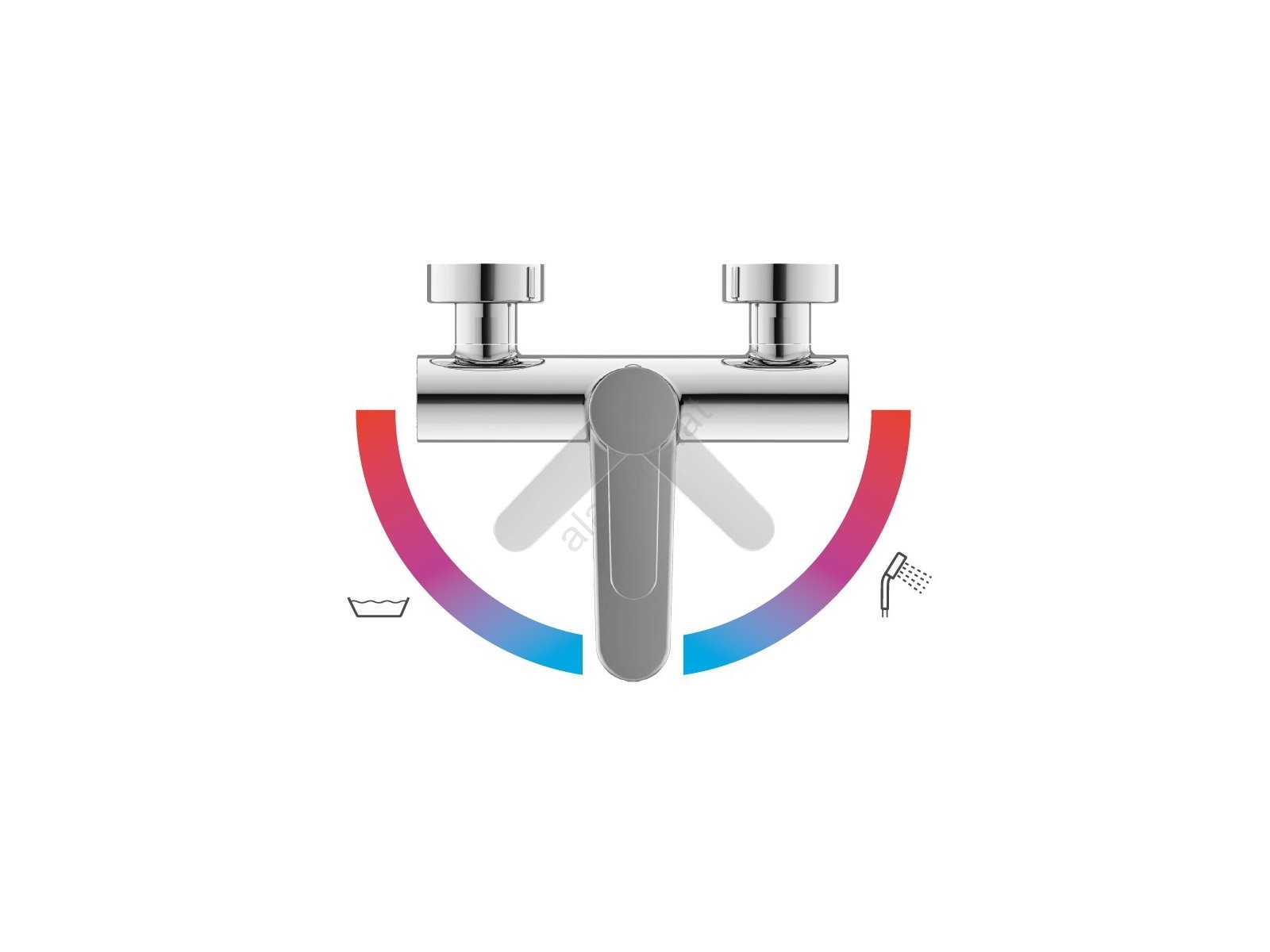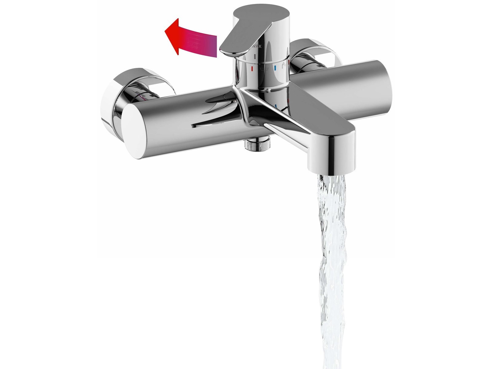 • Durch Bewegen des Hebels nach rechts (Dusche) bzw. nach links (Wanne) wird nur die Wassertemperatur geregelt, der Wasserdurchfluss bleibt stabil.