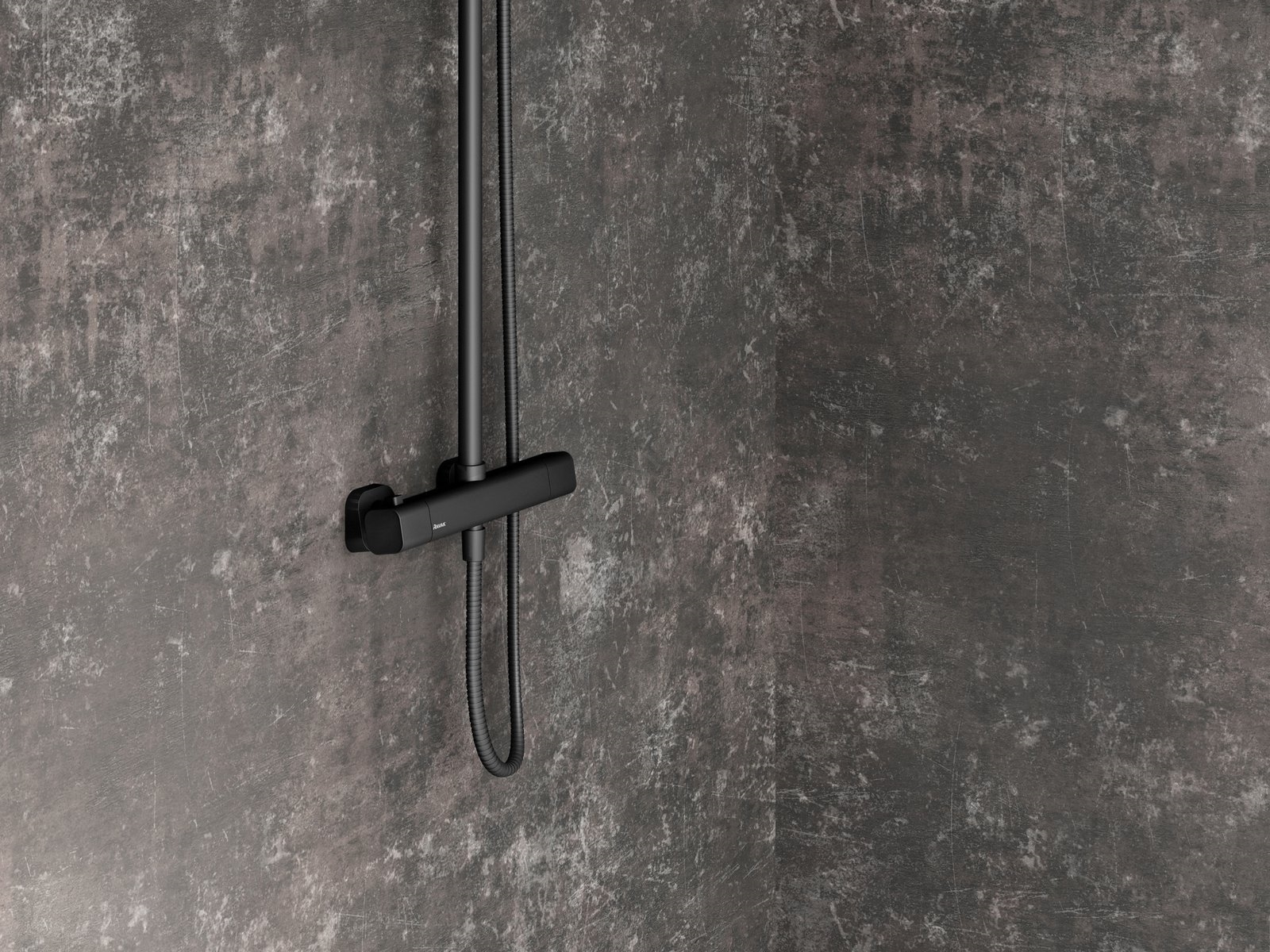 • Die thermostatische Duschsäule 10° Free ist in elegantem Schwarz erhältlich.