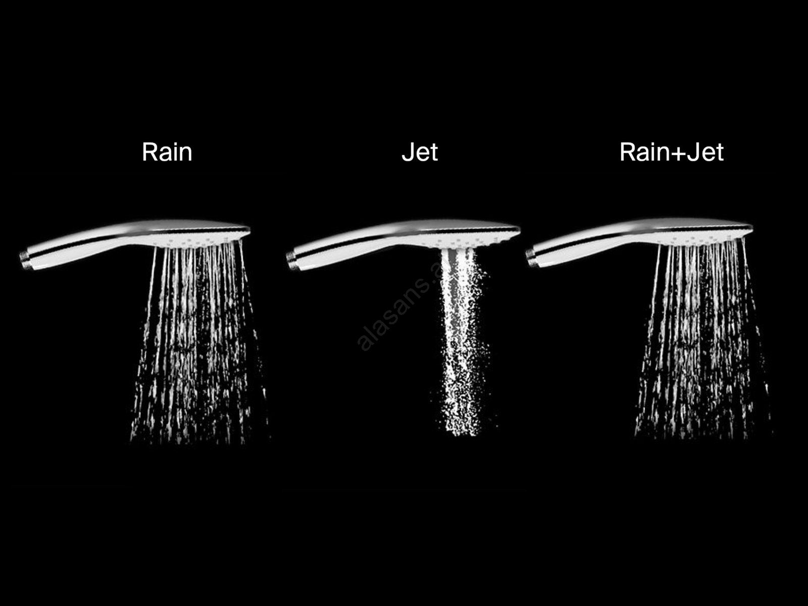 • Das Set enthält außerdem eine Handbrause, die 3 verschiedene Strahlarten bietet.