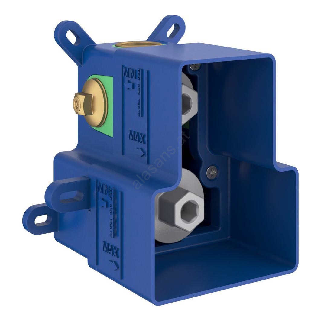 • R-box ist ein universelles Installationssystem für 2-Wege-Unterputz-Armaturen, das in der Wand eingebaut wird.