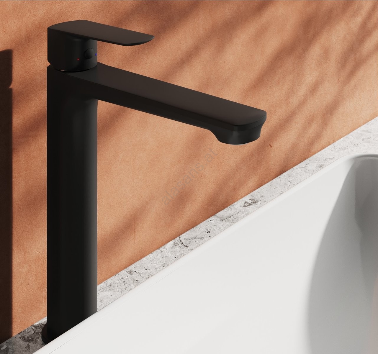 • Die Waschtischarmatur Life in Schwarz verfügt über eine extra hohe Bauhöhe von 280 mm und ist ideal für Aufsatzwaschbecken.