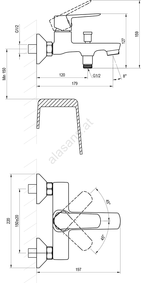 • Anschlussabstand: 150 mm.