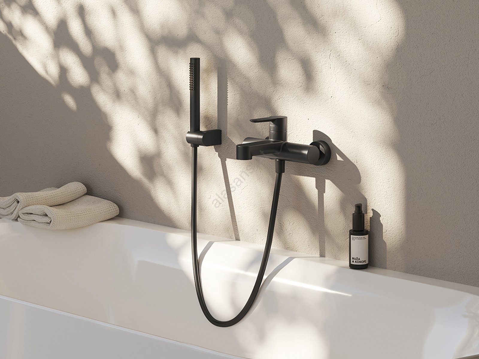 • Die Handbrause mit einer Strahlart besticht durch ihr modernes schwarzes Design.